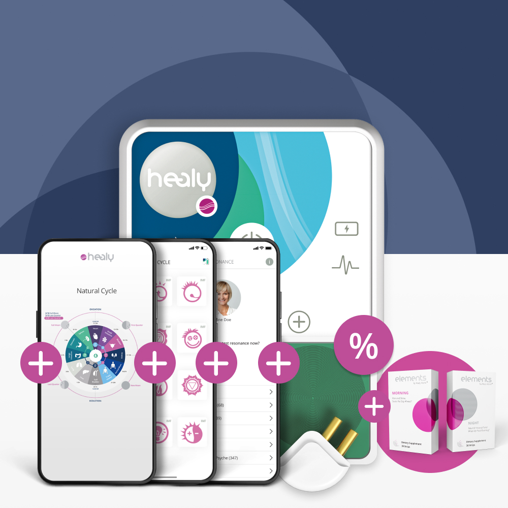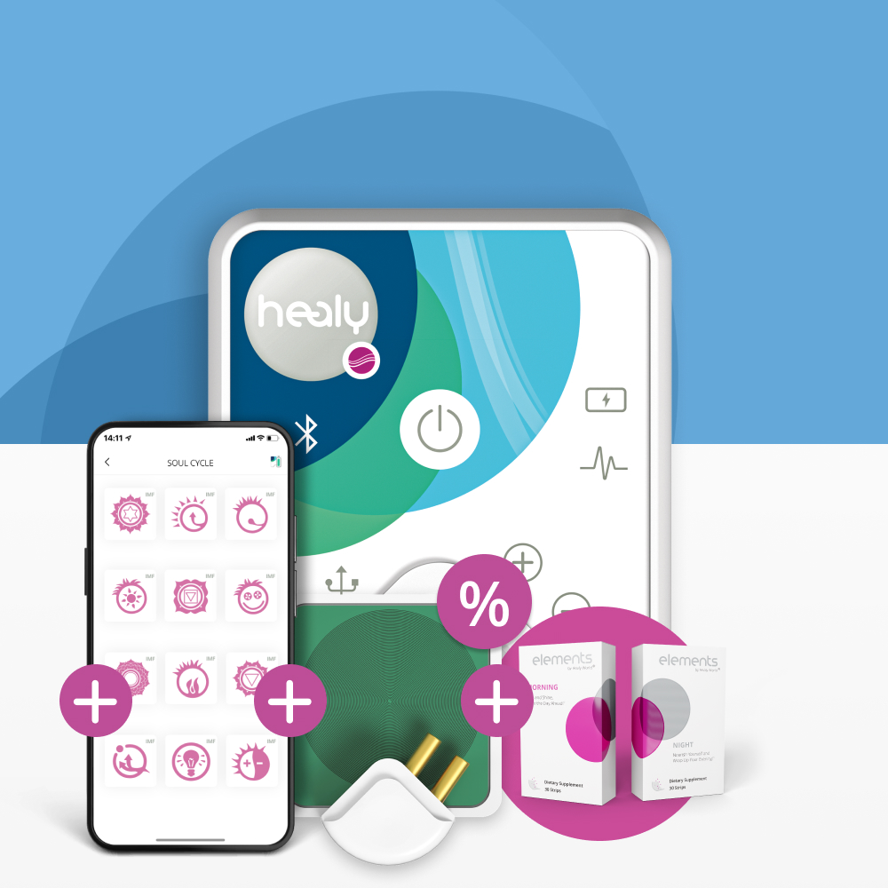Enjoy 40% off the Healy Resonance plus and receive Soul Cycle, Natural Cycle, and 1 month supply of Elements free!